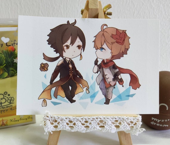 Buy Genshin Impact Zhongli Childe Chibi Art Print Online In India Etsy